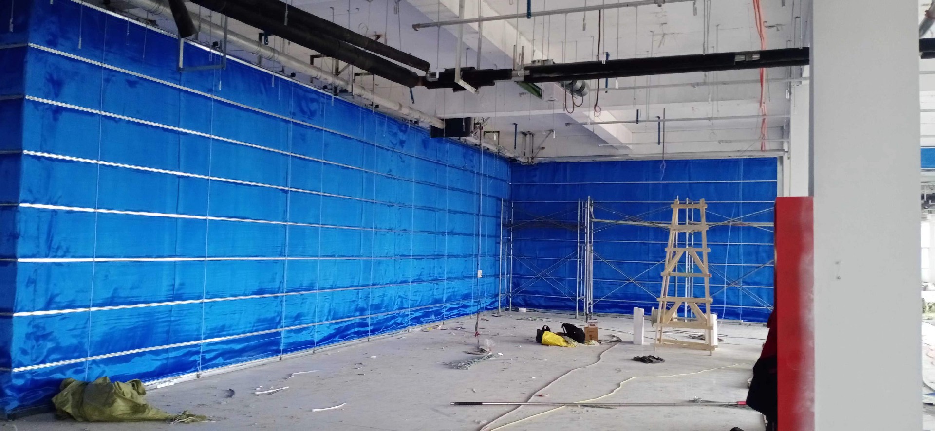 无机纤维材料做帘面,用钢质材料做夹板、导轨、座板、门楣、箱体等,并配以卷门机和控制箱所组成的能符合耐火完整性要求的卷帘。